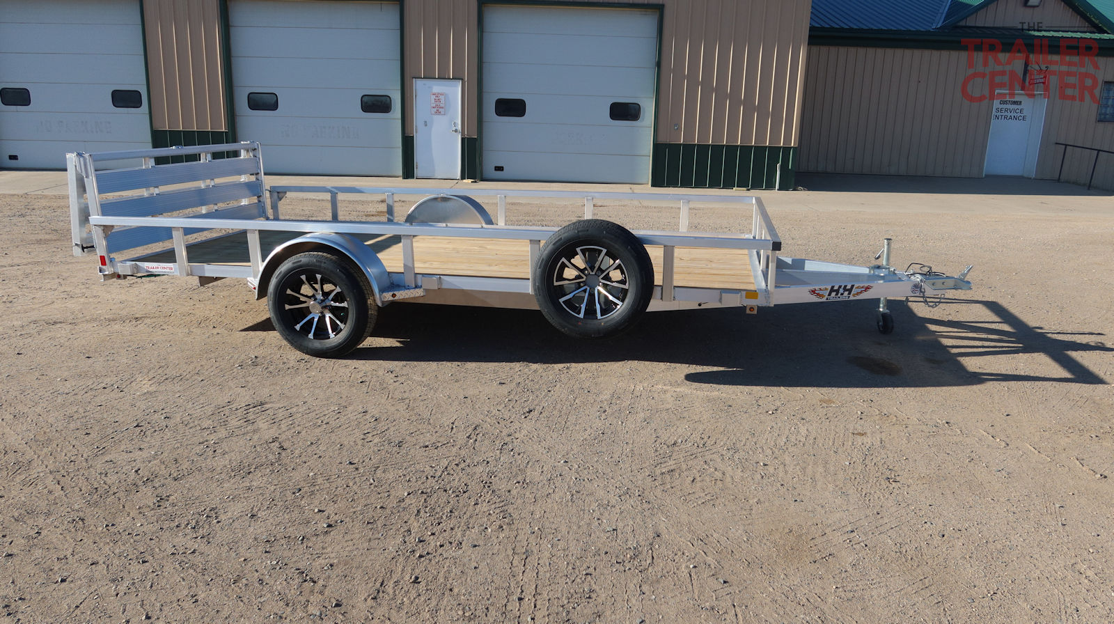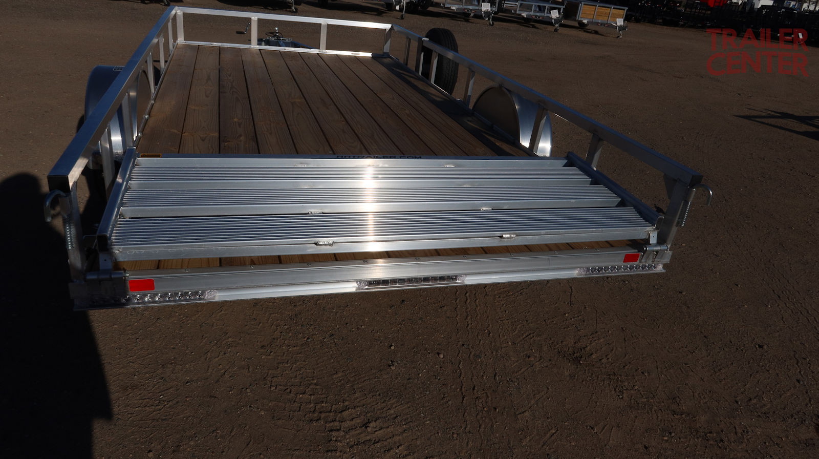 set back jack, bi-fold rear ramp, aluminum wheels, matching spare