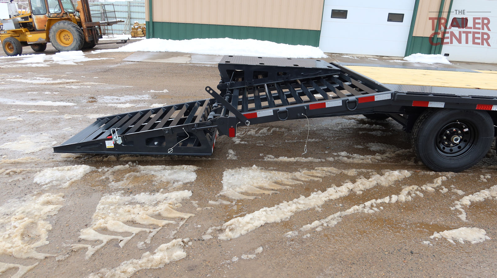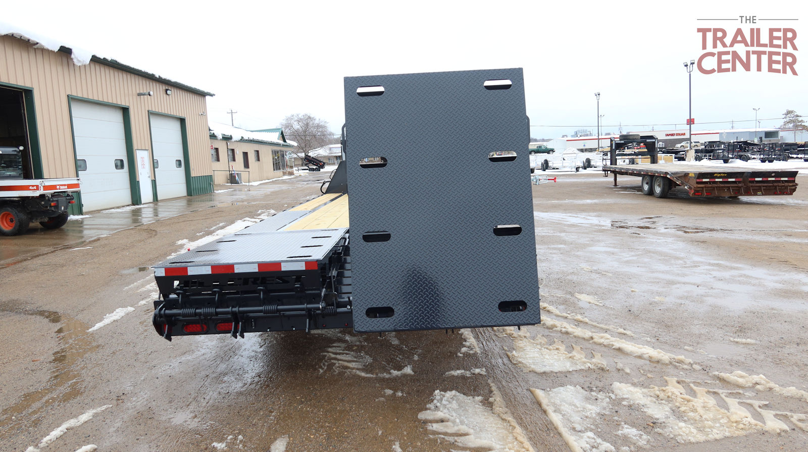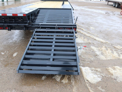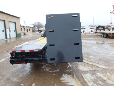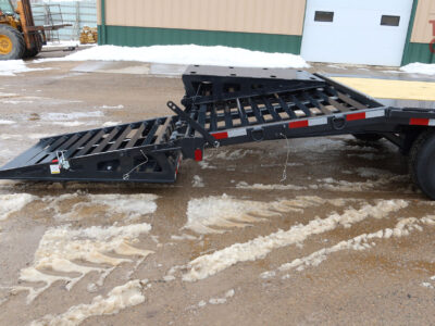 2 big flip over ramps, stake pockets with chain spools and rub rail, tool box in front
