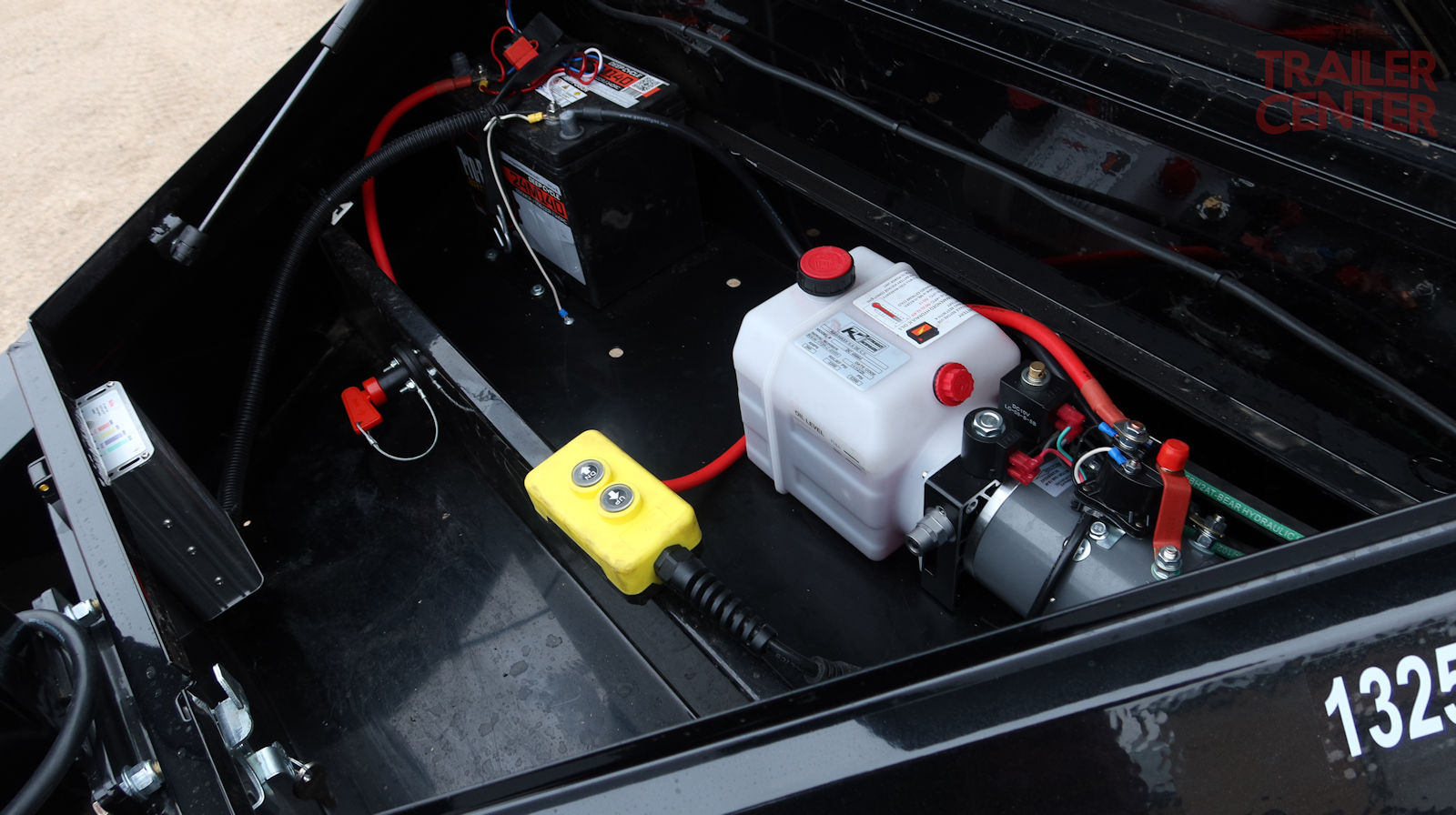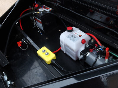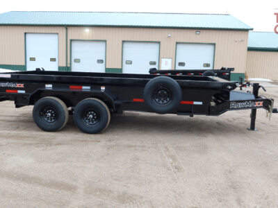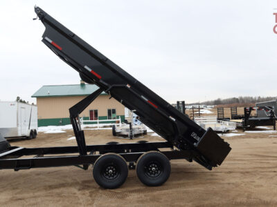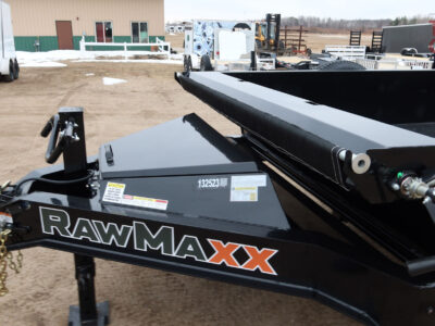 roll up tarp, Demco coupler, rear slide out ramps, 19″ tall sides